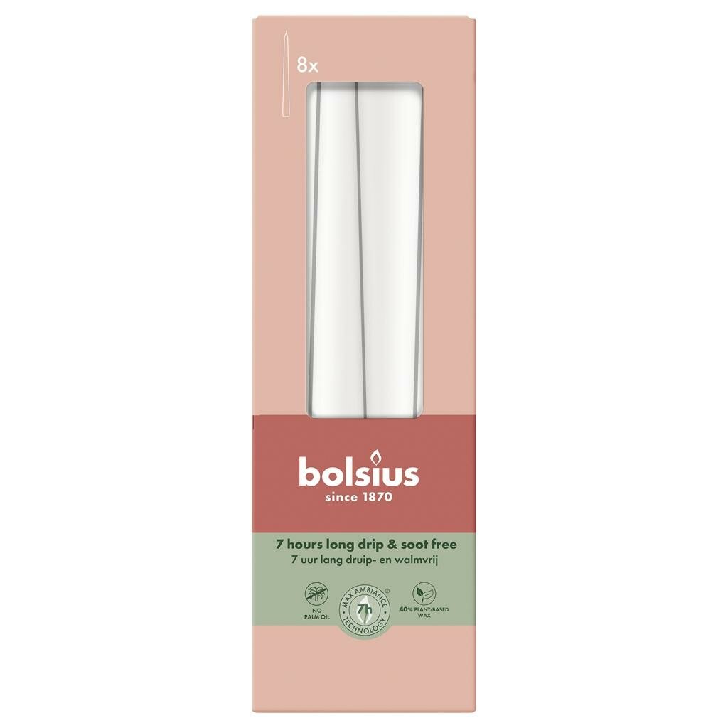 Elegante sfeer met Bolsius gotische kaarsen cloudy white. Creëer een warme en stijlvolle ambiance in je huis met de Bolsius gotische kaarsen cloudy white 24,5 cm. Deze prachtige kaarsen van het gerenommeerde merk Bolsius hebben een elegante gotische vorm en een rijke, kleur die perfect past bij zowel klassieke als moderne interieurs. De set bevat vier identieke kaarsen die samen een harmonieus geheel vormen op je eettafel, dressoir of als decoratief element in je woonkamer.