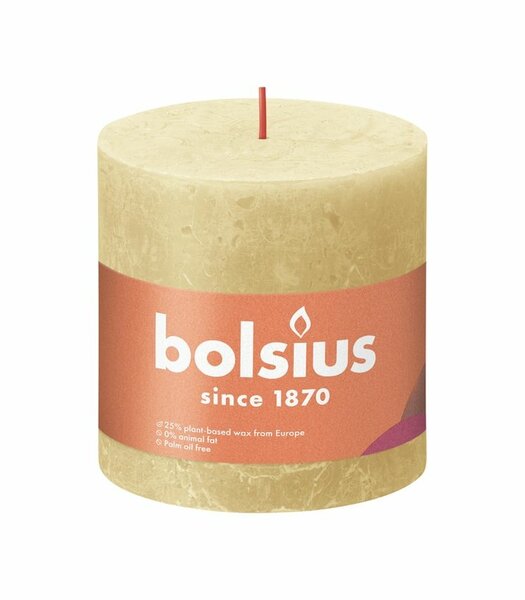 Rustieke sfeermaker voor je interieur. Bolsius kaars rustiek 10x10 cm oat beige is een prachtige stompkaars die direct sfeer toevoegt aan je interieur. Deze vernieuwde rustieke kaars van Bolsius is geïnspireerd door de kleuren en texturen uit de natuur. Met zijn prachtige tint, vormt deze kaars een stijlvolle aanvulling op je woondecoratie. De kaars is gemaakt van plantaardige was zonder dierlijke vetten en heeft een katoenen lontje voor een schone verbranding.