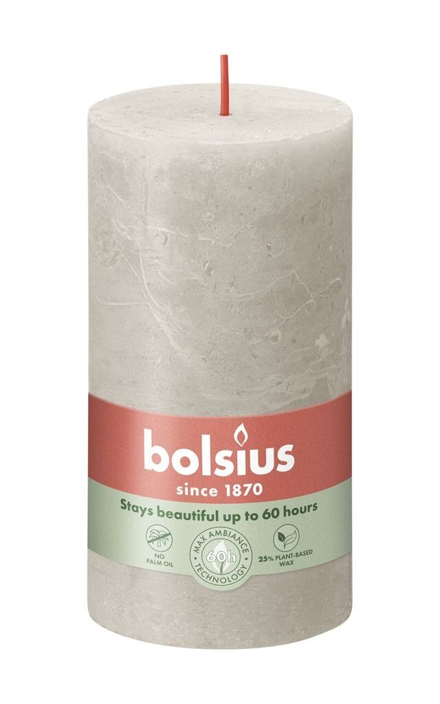 Rustieke sfeermaker voor je interieur. Bolsius kaars rustiek 7x13 cm sandy grey is een prachtige stompkaars die direct sfeer toevoegt aan je interieur. Deze vernieuwde rustieke kaars van Bolsius is geïnspireerd door de kleuren en texturen uit de natuur. Met zijn prachtige tint, vormt deze kaars een stijlvolle aanvulling op je woondecoratie. De kaars is gemaakt van plantaardige was zonder dierlijke vetten en heeft een katoenen lontje voor een schone verbranding.