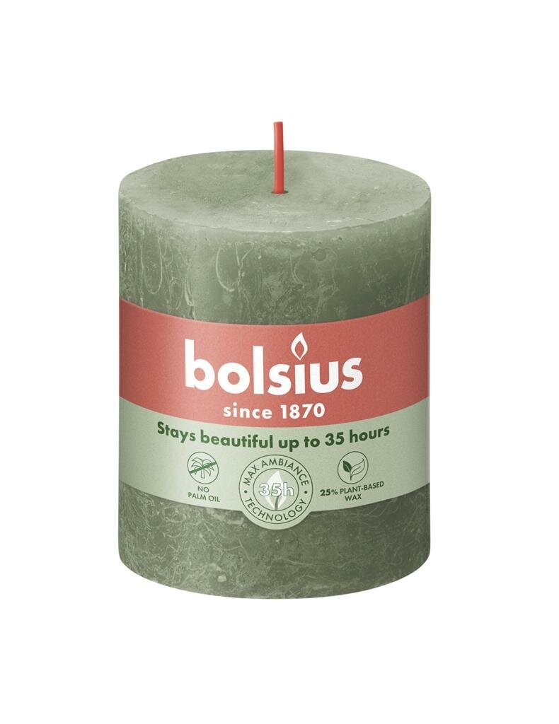 Rustieke sfeermaker voor je interieur. Bolsius kaars rustiek 7x8 cm fresh olijf is een prachtige stompkaars die direct sfeer toevoegt aan je interieur. Deze vernieuwde rustieke kaars van Bolsius is geïnspireerd door de kleuren en texturen uit de natuur. Met zijn prachtige tint, vormt deze kaars een stijlvolle aanvulling op je woondecoratie. De kaars is gemaakt van plantaardige was zonder dierlijke vetten en heeft een katoenen lontje voor een schone verbranding.