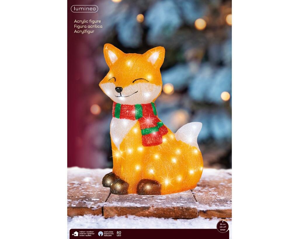 De vos is volledig weerbestendig en kan de hele winterperiode buiten blijven staan, zodat je langdurig kunt genieten van deze feestelijke decoratie. De acryl vos is voorzien van maar liefst 80 koel witte LED lampjes die een prachtig twinkellicht verspreiden. Dit creëert een betoverend effect dat doet denken aan een sterrenhemel.